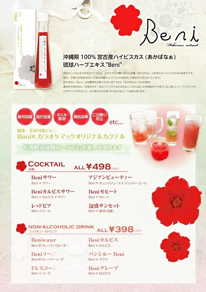 あのカラオケマックに、当社の『Beni』が使用された12品のハイビスカスメニューが参戦いたします!
